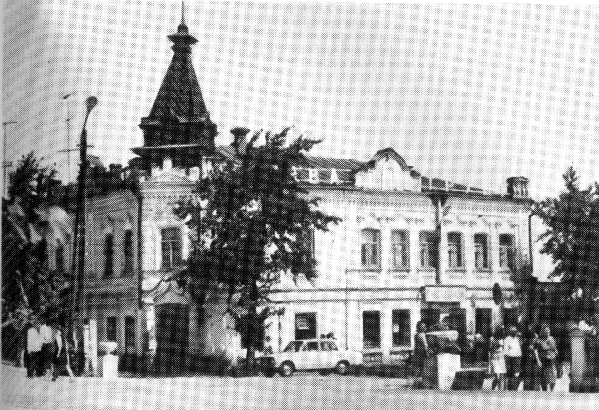 Здание бывшей аптеки Снегиревой. Дополнительная фотография опубликована в книге Ф.Г. Пичиенко "Город Хвалынск". Приволжское книжное издательство. 1977 год (сдано в набор 13.10.1976).