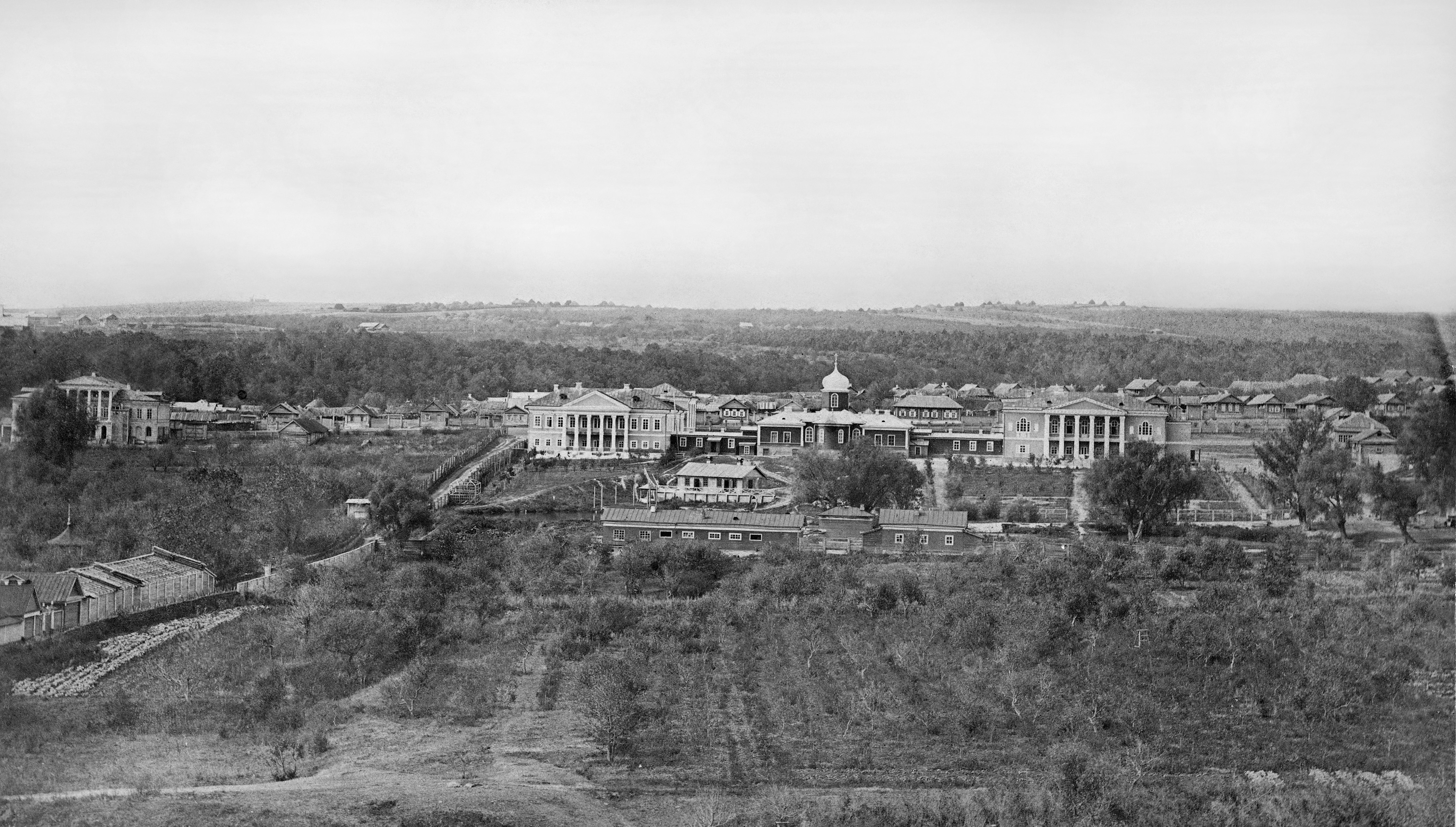 Я не знаю, кто что ставил - переставил. Но сейчас точка съемки стоит не правильно. Обсуждаемый снимок был сделан с гор. Крайнее с левой стороны здание - сохранилось. Там были казармы, Мариинская гимназия. Это подтверждается старыми открытками с соответствующими надписями. И опровергнуть это нельзя. Крайний дом с колоннами - дом купца Злобина. По мнению протоиерея о. Михаила Крестовоздвиженской церкви ВВВУТ, дом злобина был или ВСТРОЕН в существующий корпус. Или был разобран на кирпич. Нынешние красно-коричневые корпуса были построены после 1904 года. Так как в 1903 году городской управой была выделена земля в этом квадрате. Для определения точки съемки можно использовать поверхность прудов на карте гугл и на обсуждаемой фотографии. Прилагаю. Так что точка размещения фотографа - примерно против прудов НА ГОРАХ. И еще. Нижнюю дату ставим по году постройки Храма. А верхнюю нужно уменьшать до начала строительства красно-коричневых корпусов. Примерно 1903-1904 годом. Средний дом принадлежал, как пишут в интернете "зятю" Василия Злобина - Даниле Донскому. Но так как "зять" - это муж дочери, чаще всего, может быть Донсков был родственником брата Злобина - Ивана Злобина. У Ивана Злобина было 2 дочери, вторая от второго брака в 1786 году имела 11 недель от роду. Прилагаю.