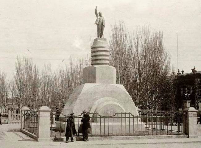 Сталинград. Александро-Невский собор и памятник Ленину на "болте"