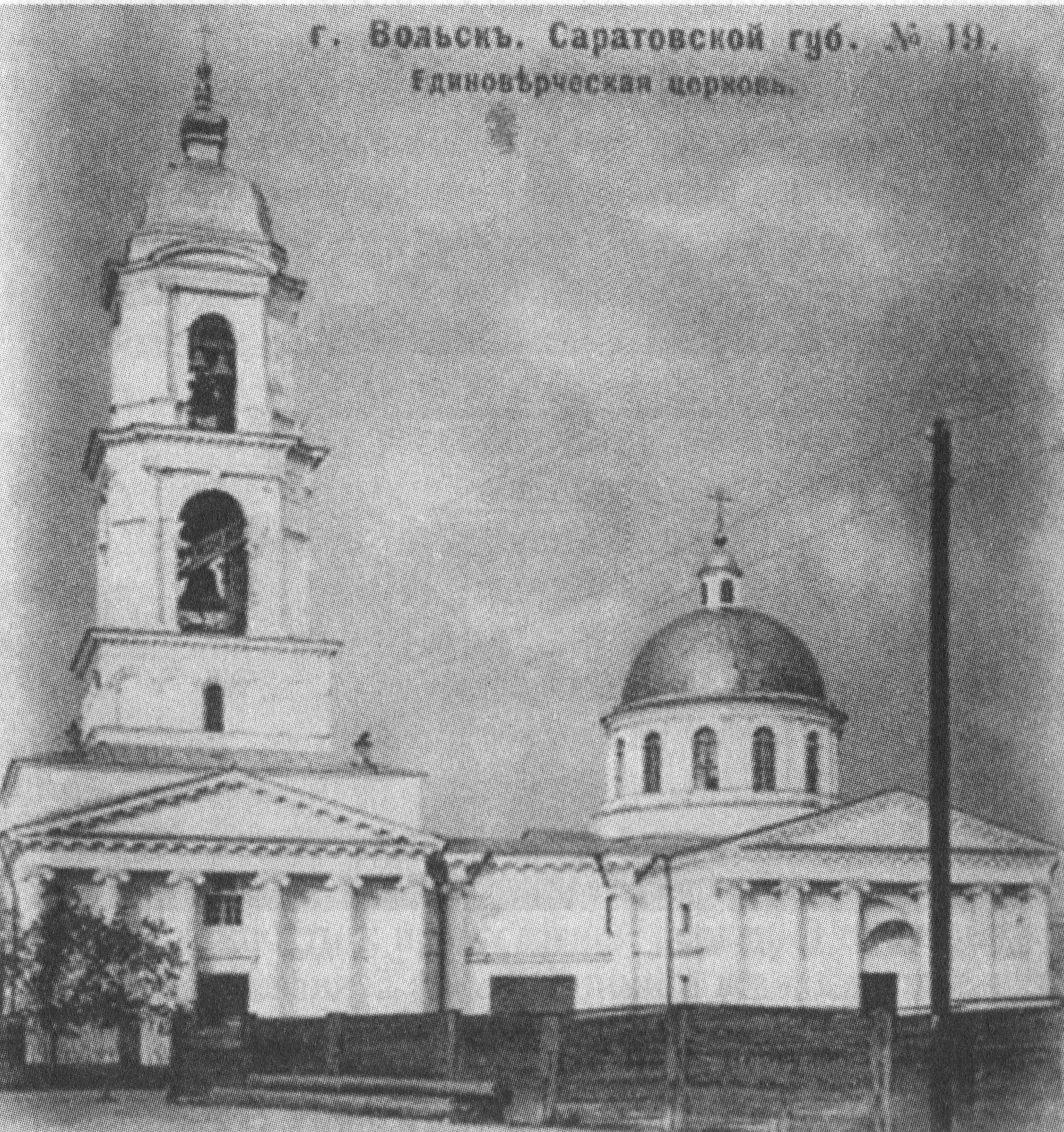 Из истории: В 1831 году в Вольске закончилось строительство старообрядческой церкви в честь Рождества Христова. После долгих споров, 6-го февраля 1845 года она была обращена в единоверие.