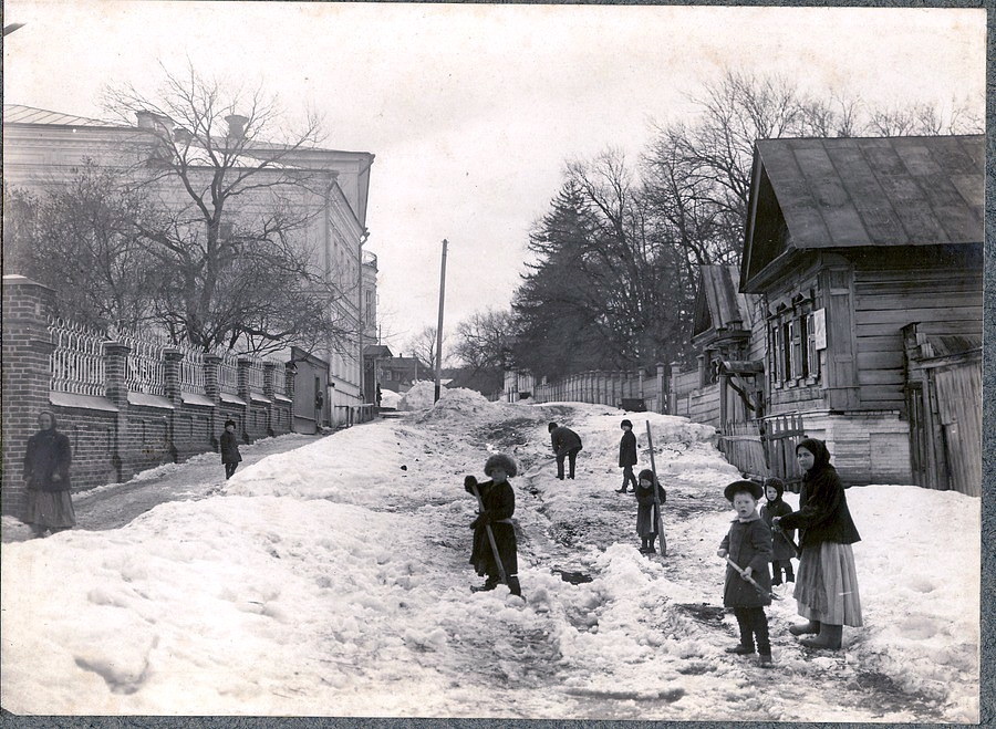 Ух, вот действительно класс! Такие "бытовые" фотографии большая редкость. А уж какие шапки на детишках - одна другой краше :))