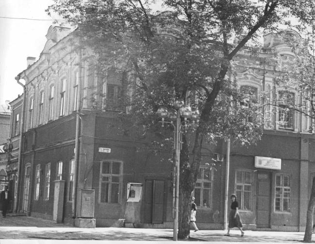 Доходный дом С. М. Масленникова, в котором располагалась столовая (?) Саратовского института сельского хозяйства. Из альбома с фотографиями Бориса Харлампиевича Медведева, директора Саратовского института сельского хозяйства и мелиорации. Фото И.М. Гольдфейна. Датируется по надписи в альбоме.