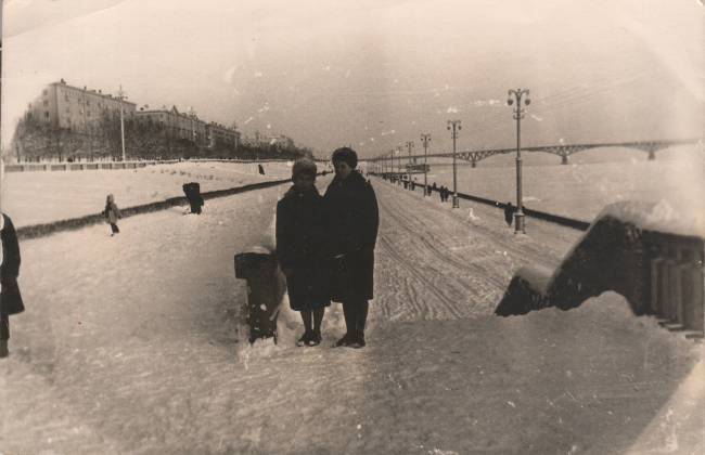 Надпись на обороте: "Стародубов Владимир Александрович, Вольская, 60, кв. 5, инвалид (столяр), "Набережная строится" ФЭД-2; "Индустар 26-М, 1:2,8/52,4 мм". Съёмка производилась перед грозой. Д=8, выдержка 1/100. Набережная у г.Саратова. [подпись]"