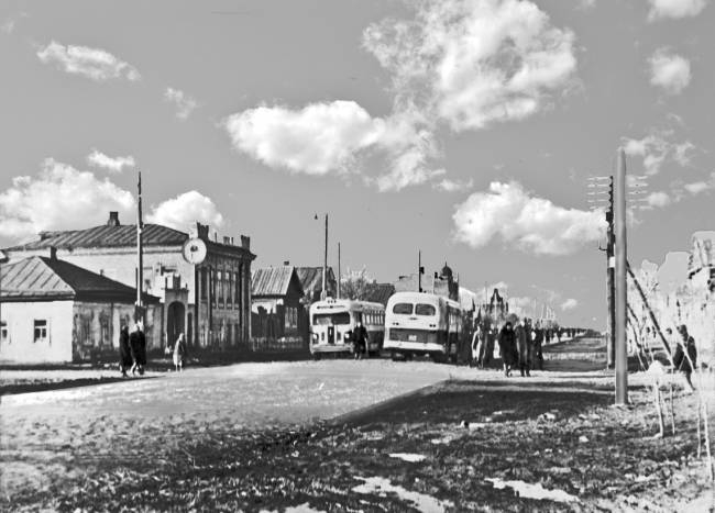 Фото из архива Мещерякова Ю.К. Стоянка автобусов на центральной автобусной остановке на ул. Малыковской.