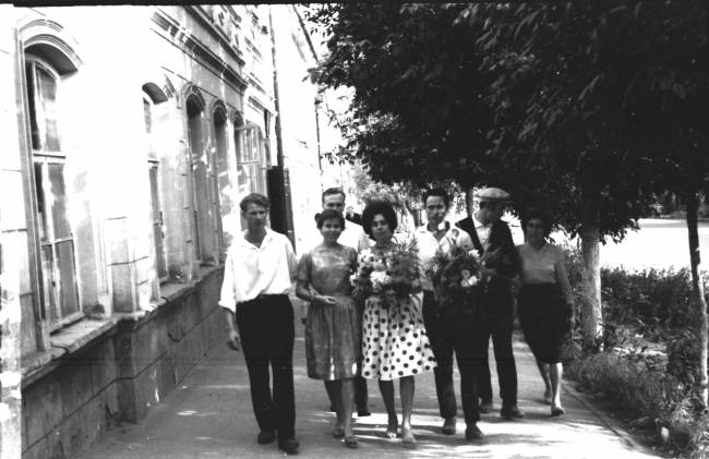 фото Ю.Мещерякова. Полагаю, что эта группа людей идет мимо здания милиции.