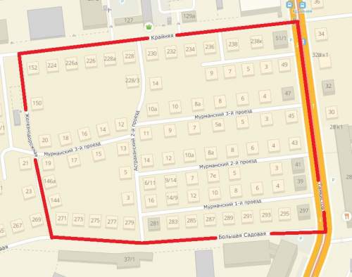 Квартал ограничен улицами Танкистов (Астраханским переулком), Крайней (Краевой), Железнодорожной и Большой Садовой.