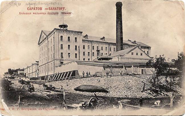 На месте своей первой мельницы на Вольской улице, сгоревшей в 1878 году, братья Шмидт построили новую - «большую шмидтовскую» мельницу по проекту архитектора А.М. Салько. Взвоз, продолжавший Вольскую улицу, звался "шмидтовским" и был последним поименованным взвозом.